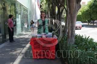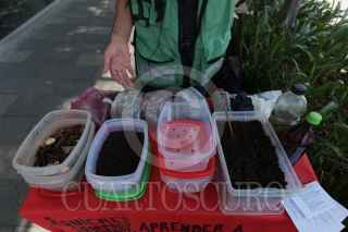 CIUDAD DE MÉXICO, 18JUNIO2024.- Un señor vende su "Lombricomposta", un abono hechos por lombrices que comen residuos orgánicos, en un puesto callejero de la colonia Roma. FOTO: ALICE MORITZ/CUARTOSCURO.COM