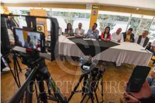 TOLUCA, ESTADO DE MÉXICO, 18JUNIO2024.- Agustín Barrera dirigente estatal del PRD acompañado por integrantes de la dirección estatal en conferencia de prensa informó que como partido ya iniciaron las acciones necesarias para obtener el registro como partido político local ante la gran posibilidad de la pérdida del registro del PRD nacional, consultarán a la militancia y a todos los integrantes para definir el rumbo del partido. FOTO: CRISANTA ESPINOSA AGUILAR /CUARTOSCURO.COM