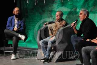CIUDAD DE MÉXICO, 17JUNIO2024.- El actor Luis Gatica y el periodista Álvaro Curva, acompañaron a César Bono luego de una función de Defendiendo al Cavernícola. FOTO: DANIEL AUGUSTO/ CUARTOSCURO.COM