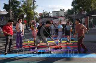 CIUDAD DE MÉXICO, 18JUNIO2024.- En el marco del mes Pride, integrantes de la Brigada de Vogue del Instituto de la Juventud (INJUVE) pintaron el paso peatonal, que se encuentra frente a las instalaciones de esta dependencia, con los colores de la bandera de la comunidad LGBTTTIQA+ y presentaron un Baile Vogue. FOTO: GRACIELA LÓPEZ /CUARTOSCURO.COM