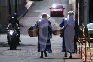 CUERNAVACA, MORELOS, 19JUNIO2024.- Vida cotidiana en el centro de la ciudad, una pareja de monjas de la religión católica caminan por la calle Abasolo vendiendo galletas. FOTO: MARGARITO PÉREZ RETANA/CUARTOSCURO.COM