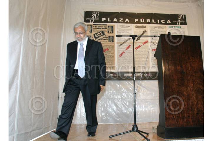 MÉXICO, D.F., 10AGOSTO2007.- Los periodistas Miguel Angel Grandos Chapa y Ricardo Rocha, durante el festejo con motivo de la publicación de la columna de Granados Chapa "Plaza Pública" por 30 años, en la Casa del Lago. FOTO: MOISÉS PABLO/CUARTOSCURO.COM