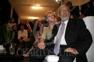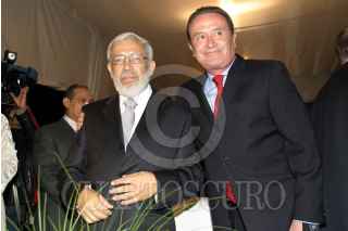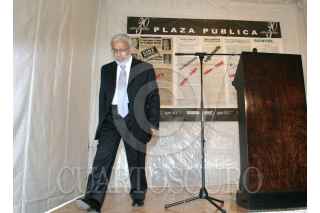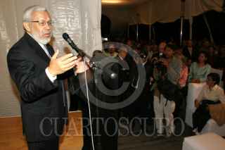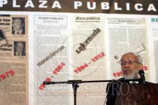 MÉXICO, D.F., 10AGOSTO2007.- Los periodistas Miguel Angel Grandos Chapa y Ricardo Rocha, durante el festejo con motivo de la publicación de la columna de Granados Chapa "Plaza Pública" por 30 años, en la Casa del Lago. FOTO: MOISÉS PABLO/CUARTOSCURO.COM