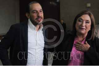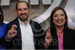 CIUDAD DE MÉXICO, 20JUNIO2024. - Xóchitl Gálvez y Marko Cortés, se toman una fotografía al término de la reunión. FOTO: DANIEL AUGUSTO /CUARTOSCURO.COM