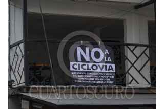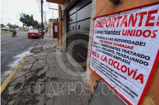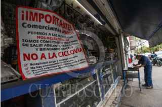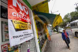 TOLUCA, ESTADO DE MÉXICO, 20JUNIO2024.- Vecinos, locatarios y comerciantes del Boulevard Isidro Fabela Norte y Sur instalaron mantas en diversos negocios en rechazo a la Ciclovía proyecto que abarcaría 8 kilómetros, aseguran que se verán afectados económicamente de llevarse a cabe el proyecto, ya que sus clientes y proveedores no tendrían donde estacionarse entre otras cosas. FOTO: CRISANTA ESPINOSA AGUILAR /CUARTOSCURO.COM