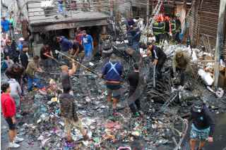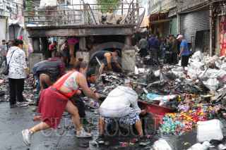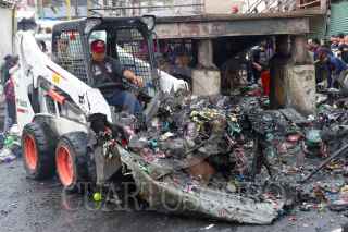 CIUDAD DE MÉXICO, 20JUNIO2024.- Bomberos y comerciantes realizaron trabajos de limpieza en la zona donde se registró un incendio en la Merced. Los hechos ocurrieron Aspectos en la calle de Cuamatzin y Rosario en la Merced, varios locales y puestos ambulantes fueron los afectados. FOTO: ROGELIO MORALES/CUARTOSCURO.COM