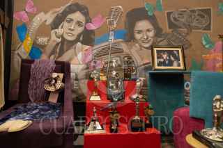 CIUDAD DE MÉXICO, 20JUNIO2024. Gustavo Briones sobrino de la desaparecida actriz Carmen Salinas, montó un espacio con pertenencias de la tambien productora a modo de homenaje a la entrada de la puesta en escena "Aventurera", en su noche de estreno en el Salón Los Ángeles. FOTO: EDGAR NEGRETE LIRA/CUARTOSCURO.COM