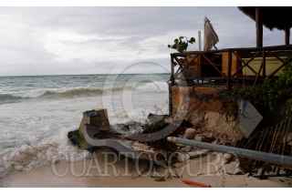 PLAYA DEL CARMEN. 21JUNIO2024.- Por el fuerte oleaje del mar en las costas de Quintana Roo provoco afectaciones, Playa Mamitas emblematica playa para el turismo nacional e interancional desaparece debido a los fuertes vientos y la lluvia que han sufrido por el temporal. FOTO: ELIABETH RUIZ/CUARTOSCURO.COM