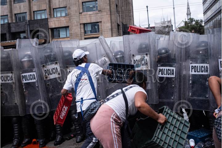 CIUDAD DE MÉXICO, 21JUNIO2024.- Elementos de la policía de la ciudad desalojaron a vendedores ambulantes de la Alameda Central que se encontraban protestando bloqueando la avenida Eje Central. FOTO: PEDRO ANZA /CUARTOSCURO.COM