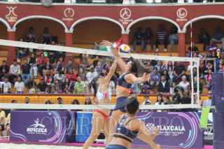 TLAXCALA, TLAXCALA, 22JUNIO2024.- Atenas Gutiérrez y Susana Torres avanzan a las semifinales del Torneo Clasificatorio Olímpico "NORCECA de Voleibol de Playa Tlaxcala 2024", en la instancia de cuartos de final dejaron en el camino a la pareja de Costa Rica integrada por Ximena Núñez y Kianny Quesada. Los parciales del partido fueron 21-12 y 21-15. Mañana en la Plaza de Toros Jorge "El Ranchero" Aguilar afrontarán semifinales y en caso de ganar, disputarán el oro y el cotejo por la clasificación a París. FOTO: ALAIN HERNÁNDEZ/CUARTOSCURP.COM