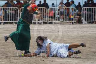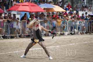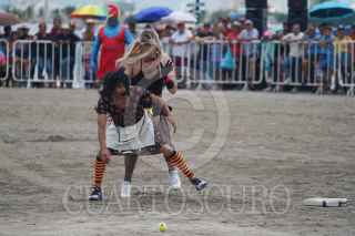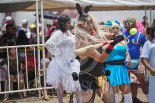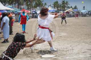VERACRUZ, VERACRUZ, 23JUNIO2024.- Previo a los eventos del Carnaval de Veracruz en su aniversario número 100, se celebró en la Playa Martí el juego de béisbol" Solteras vs Casadas", en donde los jugadores eran hombres disfrazados de personajes femeninos. Entre los personajes famosos que jugaron mientras decenas de asistentes los observaban y animaban, destacó la presencia de la ex candidata a la presidencia Xóchitl Gálvez, FOTO: VICTORIA RAZO /CUARTOSCURO.COM