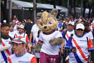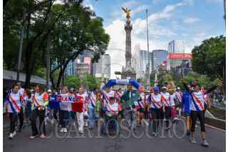 CIUDAD DE MÉXICO, 23JUNIO2024.- Más de 2 mil quinientas personas se dieron cita en el Ángel de la Independencia para disfrutar de la Caminata y Feria Deportiva rumbo a los Juegos Olímpicos de París 2024, evento gratuito, organizado por el Instituto del Deporte de la Ciudad de México y el Embajada de Francia en nuestro país y el Instituto Francés de América Latina (IFAL). Con meta en el Monumento a la Revolución, las y los participantes recorrieron 2.5 km con su familia y amigos, para después hacer un recorrido por los stands de patrocinadores y presenciar exhibiciones de actividades deportivas como minigolf, fútbol, tiro con arco, judo, taekwondo, box, actividades en sillas de ruedas, así como demostración y taller de break dance, disciplina que se integra a las competencias en estos juegos olímpicos, presentada por el colectivo Spin Máster, que ganó el premio de la Nacional Juventud CDMX en 2022. El evento estuvo encabezado por el director general del Instituto del Deporte, Julio Pérez Guzmán, así como por la excelentísima Delphine Borione, embajadora de Francia en México, quienes en presencia de los espectadores realizaron el sorteo y entrega del viaje doble y alojamiento a París. FOTO: INDEPORTES/CUARTOSCURO.COM