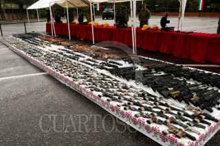 CHILPANCINGO, GUERRERO, 24JUNIO2024.- La mañana de este lunes, en presencia de la Gobernadora Evelyn Salgado Pineda, se llevó a cabo la ceremonia de destrucción de armas, donde el comandante de la 35 zona militar, Jorge Nieto Sánchez, dio a conocer que en dicho evento se destruirían 367 armas cortas, 253 armas largas, 66 mil 966 cartuchos de distintos calibres y mil 208 cargadores, los cuales fueron decomisados en distintos operativos en el estado. FOTO: DASSAEV TÉLLEZ ADAME/CUARTOSCURO.COM