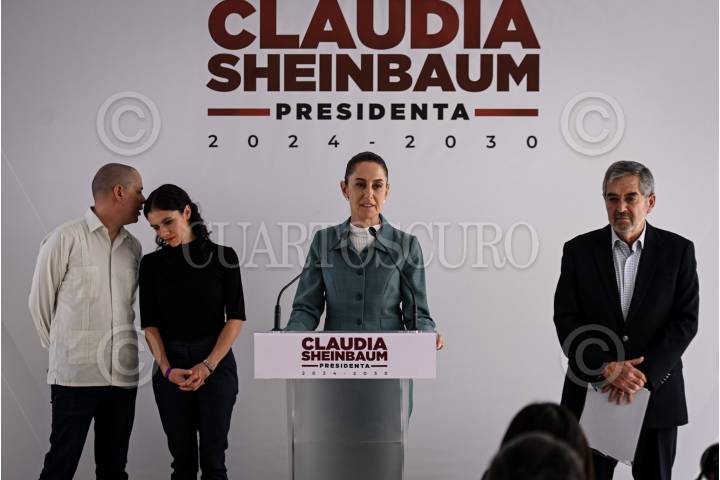 CIUDAD DE MÉXICO, 24JUNIO2024.- La presidenta electa, Claudia Sheinbaum Pardo, durante la conferencia de prensa en su Casa de Transición. Al evento asistió también Juan Ramón De la Fuente, quien tendrá el cargo de Canciller durante el sexenio entrante. FOTO: PEDRO ANZA /CUARTOSCURO.COM