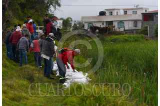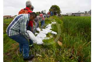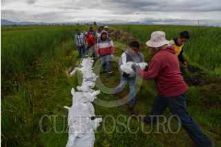 OCOYOACAC, ESTADO DE MÉXICO, 25JUNIO2024.- Ante la temporada de lluvia se inició el encostalamiento del bordo de la Laguna de San Pedro Tultepec, en el lado del municipio de Ocoyoacac, como una labor preventiva para evitar inundaciones sobre todo en San Pedro Cholula, estas acciones van encaminadas a prevenir inundaciones que pueden afectar alrededor de 600 familias que podrían encontrarse en peligro, serán instalados 4000 costales en la zona. FOTO: CRISANTA ESPINOSA AGUILAR /CUARTOSCURO.COM