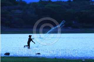 MIACATLÁN, MORELOS, 25JUNIO2024.- Un niño pesca con atarraya en la laguna El Rodeo, el retraso del temporal de lluvia redujo el nivel del agua. FOTO: MARGARITO PÉREZ RETANA/CUARTOSCURO.COM