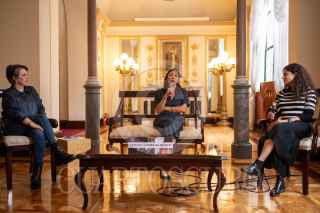 CIUDAD DE MÉXICO, 26JUNIO2024.- La cantautora y periodista Naomi Larsson, ofreció una conferencia de prensa en el Teatro de la Ciudad Esperanza Iris, en la que habló sobre su proyecto musical "Naomi in Blue" y sobre su próximo concierto gratuito, el cual se llevará a cabo el día 30 de junio en el mismo recinto, y contará con la participación de Carla Sariñana y Joaquina Mertz. FOTO: PEDRO ANZA /CUARTOSCURO.COM