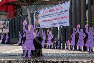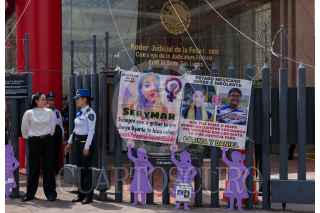 CIUDAD DE MÉXICO, 26JUNIO2024.- Varios carteles fueron puestos frente a la sede del Poder Judicial Federal de San Lázaro durante la manifestación convocada por madres de víctimas de feminicidio para que se les niegue el amparo a los feminicidas de sus hijas de y para pedir justicia. FOTO: ALICE MORITZ/CUARTOSCURO.COM FOTO: ALICE