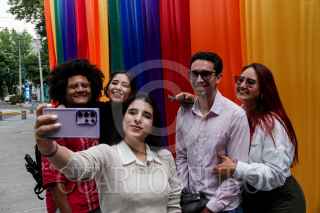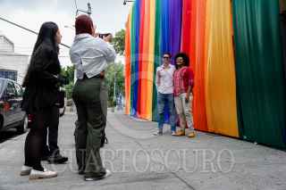 CIUDAD DE MÉXICO, 27JUNIO2024.- En la esquina de las calles Coahuila y Jalapa, una bandera monumental alusiva a la población LGBTTTIQPA+ en el marco del mes del orgullo. FOTO: GALO CAÑAS/CUARTOSCURO.COM