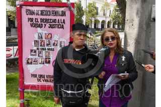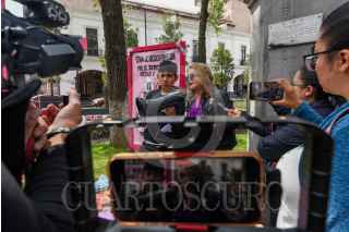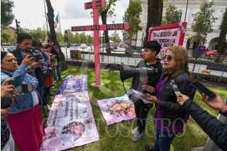TOLUCA, ESTADO DE MÉXICO, 27JUNIO2024.- Norma Margarita mamá de Paulina Gómez víctima de feminicidio en el estado de Chiapas se pronunció en los memoriales instalados en la Plaza González Arratia en la ciudad de Toluca, quien hace un recorrido por los estados de México para hacer un llamado a parar la violencia feminicida. FOTO: CRISANTA ESPINOSA AGUILAR /CUARTOSCURO.COM