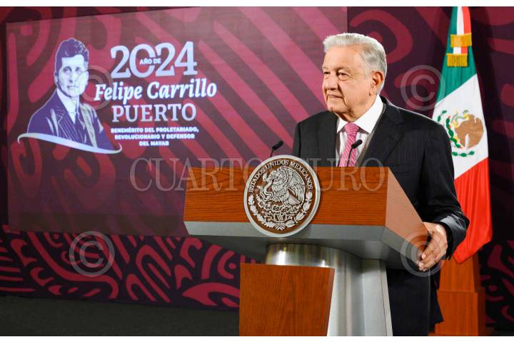 CIUDAD DE MÉXICO, 28JUNIO2024.- Andrés Manuel López Obrador, Presidente de México en conferencia de prensa en el Salón Tesorería de Palacio Nacional. Acompaña al mandatario: Jorge Nuño Lara, secretario de Infraestructura, Comunicaciones y Transportes. FOTO: PRESIDENCIA/CUARTOSCURO.COM