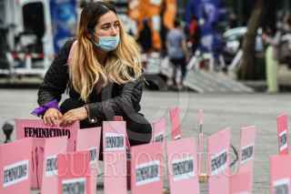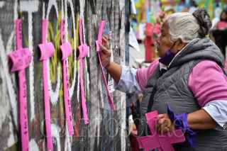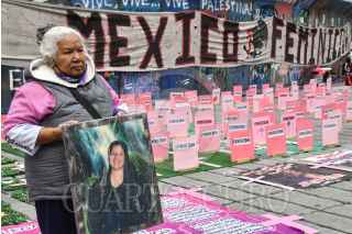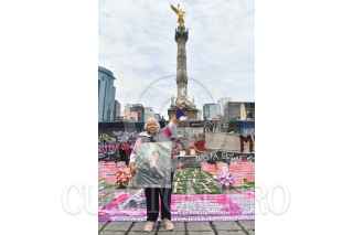 CIUDAD DE MÉXICO, 27JUNIO2024.- Irinea, en compañía de mujeres activistas, realizó un acto simbólico en las inmediaciones del Ángel de la Independencia por el 14 aniversario luctuoso de su hija Mariana Lima Buendía, víctima de feminicidio. FOTO: MARIO JASSO/CUARTOSCURO.COM