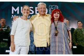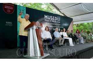 CAMPECHE, CAMPECHE, 28JUNIO2024.- Andrés Manuel López Obrador, Presidente de México, encabezó la Inauguración de MUSED, museo de sitio de Edzná, acompañado de: Claudia Sheinbaum Pardo, Virtual Presidenta Electa; Layda Elena Sansores San Román, Gobernadora de Campeche; Luis Cresencio Sandoval González, Secretario de la Defensa Nacional, y Diego Prieto Hernández, Director General del Instituto Nacional de Antropología e Historia (INAH); FOTO: JULIO MUÑOZ MARTINEZ/PRESIDENCIA/CUARTOSCURO.COM