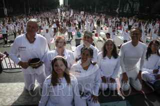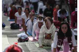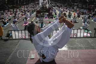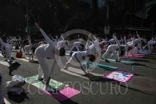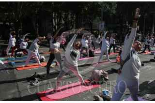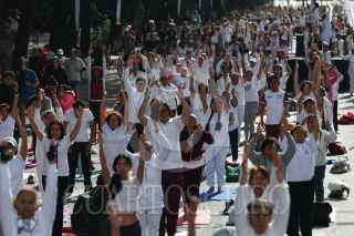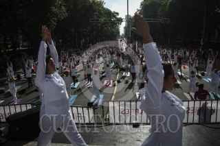 CIUDAD DE MÉXICO, 30JUNIO2024.- Para celebrar el Día Internacional del Yoga se llevó a cabo Clase Magistral de Yoga en la Glorieta del Ahuehuete en paseo de la Reforma a través de Injuve y pilares. Asistieron al rededor de 1,300 personas. FOTO: ANDREA MURCIA /CUARTOSCURO.COM
