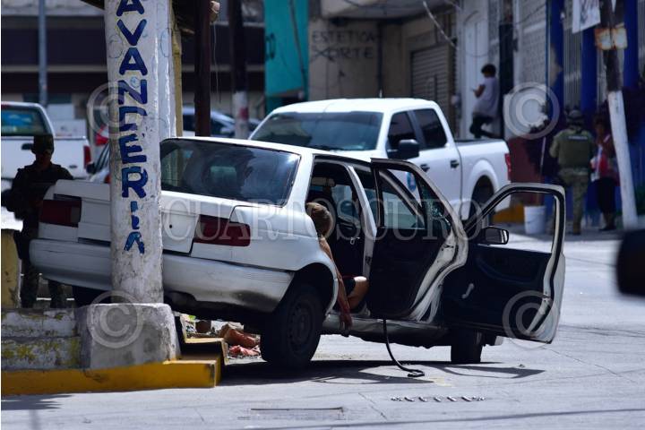 ACAPULCO, GUERRERO, 30JUNIO2024.- Esta tarde dos personas fueron asesinadas y una más resultó herida en un ataque armado a un taxi colectivo en el centro de Acapulco, el lugar fue resguardado por la Guardia Nacional, policías y soldados para que se realizará el peritaje. FOTO: CARLOS ALBERTO CARBAJAL/CUARTOSCURO.COM