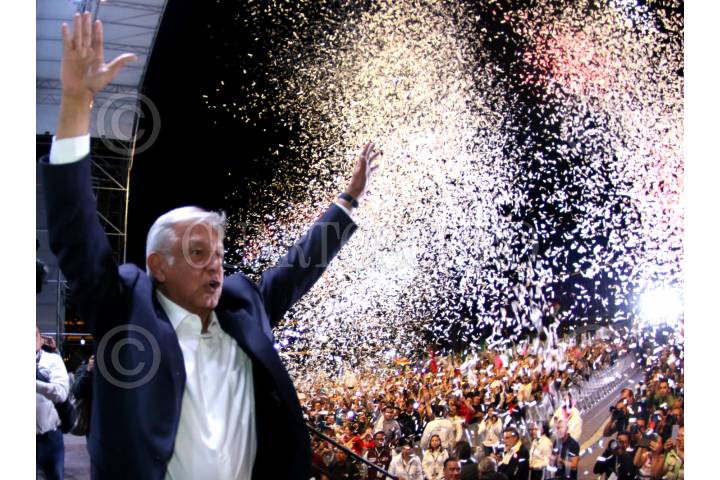 CIUDAD DE MÉXICO, 01JULIO2024.- Se conmemoran seis años del triunfo de Andrés Manuel López Obrador (AMLO) en las elecciones del primero de julio de 2018. Fue electo presidente de México como candidato de la coalición Juntos Haremos Historia, conformada por Morena, Partido del Trabajo y Partido Encuentro Social, con 53.19% los votos. En la foto Andrés Manuel Lopez Obrador, virtual ganador de la presidencia de la república a su llegada al Zócalo de la Ciudad de México. FOTO: SAÚL LÓPEZ /CUARTOSCURO.COM