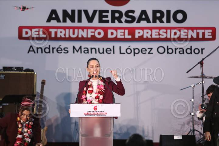 CIUDAD DE MÉXICO, 01JULIO2024.- Claudia Sheinbaum Pardo, virtual presidenta electa; Clara Brugada, jefa de Gobierno electa y Mario Delgado encabezaron el evento por el 6to aniversario del triunfo del presidente Andrés Manuel López Obrador que se llevó a cabo en el completo de los pinos. FOTO: ANDREA MURCIA /CUARTOSCURO.COM