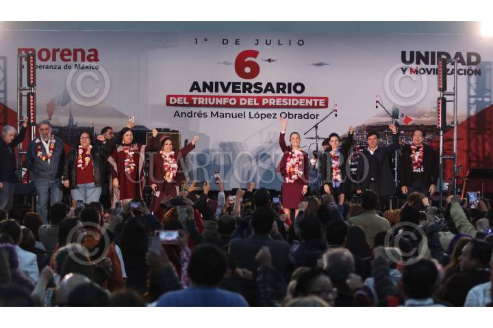 CIUDAD DE MÉXICO, 01JULIO2024.- Claudia Sheinbaum Pardo, virtual presidenta electa; Clara Brugada, jefa de Gobierno electa y Mario Delgado encabezaron el evento por el 6to aniversario del triunfo del presidente Andrés Manuel López Obrador que se llevó a cabo en el completo de los pinos. FOTO: ANDREA MURCIA /CUARTOSCURO.COM