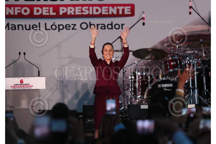 CIUDAD DE MÉXICO, 01JULIO2024.- Claudia Sheinbaum Pardo, virtual presidenta electa; Clara Brugada, jefa de Gobierno electa y Mario Delgado encabezaron el evento por el 6to aniversario del triunfo del presidente Andrés Manuel López Obrador que se llevó a cabo en el completo de los pinos. FOTO: ANDREA MURCIA /CUARTOSCURO.COM