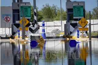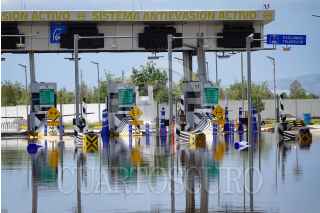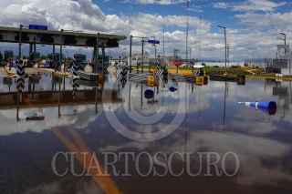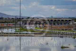 NEZAHUALCÓYOTL, ESTADO DE MÉXICO, 02JULIO2024.- Debido a las intensas lluvias la caseta Nabor Carrillo quedó inundada junto con los accesos y salidas del Circuito Mexiquense. FOTOS: ROGELIO MORALES /CUARTOSCURO.COM