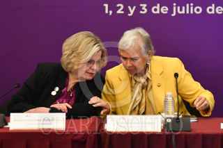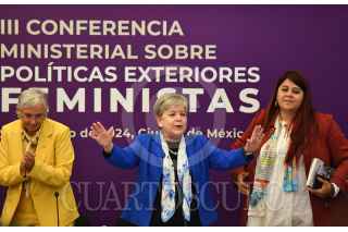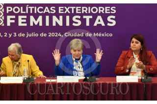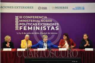 CIUDAD DE MÉXICO, 03JULIO2024.- Olga Sánchez, senadora de la República; Alicia Bárcena, secretaria de Relaciones Exteriores y Marcela Mora, senadora y presidenta de la Comisión de Igualdad, durante el cierre de los trabajos de la III Conferencia Ministerial sobre Políticas Exteriores Feministas realizados en las instalaciones de la SRE. FOTO: MARIO JASSO/CUARTOSCURO.COM