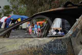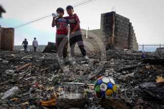 NEZAHUALCÓYOTL, ESTADO DE MÉXICO,03JULIO2024.- Debido a una supuesta toma clandestina de turbosina, el pasado lunes un predio irregular se incendió consumiendo 11 casas. En imagen niños juegan en los escombros tras mencionado hecho. FOTOS: ROGELIO MORALES /CUARTOSCURO.COM