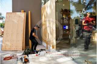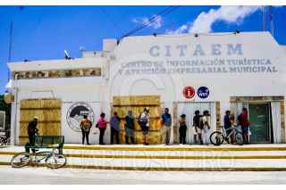 TULUM, QUINTANA ROO. 04JULIO2024.- El municipio de Tulum de Quintana Roo se prepara para el impacto del huracán Beryl, el Ayuntamiento está totalmente tapiado, al igual que algunos centros de trabajo y oficinas. Sin acceso hacia la zona sur del Parque Jaguar, los turistas que se hospedaban en los hoteles de esa área han sido evacuados y la zona arqueológica hasta el domingo o lunes no abrirá por medidas de prevención. La Secretaría de la Defensa Nacional estableció el Plan de Auxilio a la Población Civil en Casos de Desastre, denominado PLAN DNIII está activada. El Centro de Acopio de la Comuna listo para alguna contingencia. FOTO: ELIZABETH RUIZ/CUARTOSCURO.COM