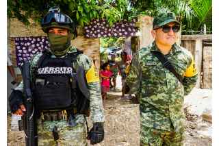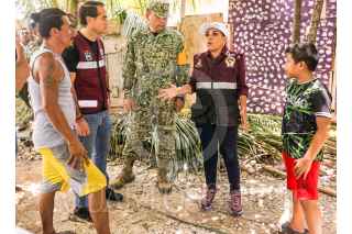 TULUM, QUINTANA ROO. 04JULIO2024.- Mara Lezama, gobernadora de Quintana Roo, recorrido por el asentamiento irregular 2 de Octubre de Tulum, en compañía de elementos del Ejército Mexicano y la Guardia Nacional, horas antes del impacto del huracán Beryl a quienes les exhortó ir a resguardo seguro en los refugios habilitados por las autoridades. FOTO: ELIZABETH RUIZ/CUARTOSCURO.COM