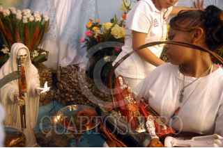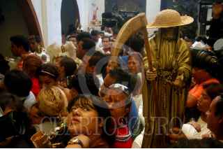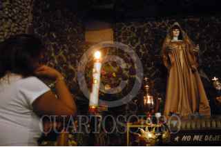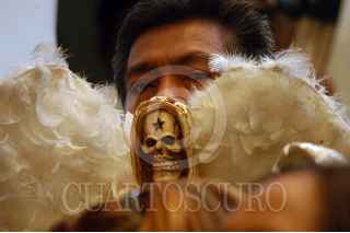 MÉXICO D.F. 12AGOSTO2007.-Decenas de fieles asistierón a la iglesia de San Felipe de Jesús, donde se realizó la misa en honor a la "Santisima Muerte" en la la cual se dio a conocer la nueva imagen y su nuevo nombres el cual sera el de "Angel de la Muerte". FOTO: GUILLERMO PEREA/CUARTOSCURO.COM