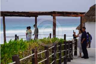 CANCÚN, QUINTANA ROO, 04JULIO2024.- A pesar de que las autoridades han pedido a paseantes ya no acercare a las playas, esto ante la inminente entrada del huracán Beryl, aun se observan a turistas divirtiéndose en las aguas turquesas de este destino turístico. El gobierno que encabeza Mara Lezama han pedido que a partir de las cinco de la tarde todas las personas busquen refugio. FOTO: ELIZABETH RUIZ/CUARTOSCURO.COM