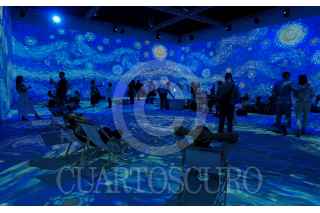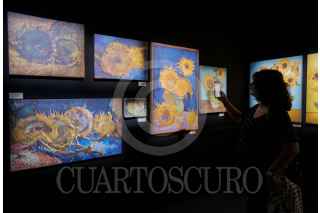 CIUDAD DE MÉXICO, 04JULIO2024.- Este miércoles se inauguró la exposición "The Immersive Experience" en la explanada del Monumento a la Madre, un espectáculo de luz y sonido que presenta la obra del artista Vincent Van Gogh. Incluye un interactivo de realidad virtual que presenta un día en la vida del artista, en el cual se puede descubrir la inspiración detrás de ocho de sus obras, que incluyen: El dormitorio de Vincent en Arles y Noche estrellada sobre el río Ródano. FOTO: ALICE MORITZ/CUARTOSCURO.COM