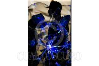 CIUDAD DE MÉXICO, 04JULIO2024.- La silueta de un vendedor de globos LED se observa a través de su producto en la explanada del Palacio de Bellas Artes. FOTO: GALO CAÑAS/CUARTOSCURO.COM