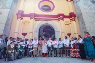 SANTA LUCÍA DEL CAMINO, OAXACA, 05JULIO2024.- Alejandra Frausto, secretaria de Cultura, y Salomón Jara, gobernador de Oaxaca, encabezaron la reapertura del templo católico Santa Lucía del Camino luego de una rehabilitación que constó de una inversión de 4 millones 389 mil 376 pesos. Este monumento forma parte de los 301 inmuebles de Oaxaca que resultaron dañados por los sismos del 2017. FOTO: SECRETARÍA DE CULTURA/CUARTOSCURO.COM