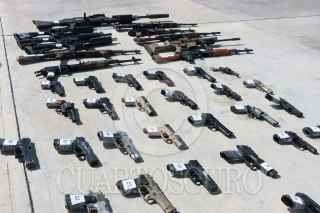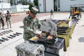 EL SABINO, CHIAPAS, 05JULIO2024.- Ceremonia de destrucción de armamento y sus accesorios en El Sabino, con un total de 550 armas de diferentes características y calibres, de las cuales 299 son largas y 251 cortas; 662 cargadores y 52 mil 397 cartuchos. FOTO: ESPECIAL/CUARTOSCURO.COM