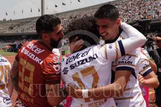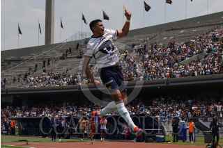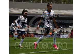 CIUDAD DE MÉXICO, 07JULIO2024.- Jorge Ruvalcaba, extremo del equipo de Pumas, festejó el cuarto gol anotado a su favor contra el León durante el partido correspondiente a la Jornada 1 del Apertura 2024 en el Estadio Olímpico Universitario. FOTO: GRACIELA LÓPEZ /CUARTOSCURO.COM