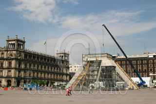 CIUDAD DE MÉXICO, 08JULIO2024.- Casi terminada se encuentra la réplica de la pirámide de Kukulkán que esta siendo construida en el Zócalo y será parte del espectáculo de mapping "El Pueblo Maya y Felipe Carrillo Puerto, Memoria Luminosa" que se realizara del 12 al 21 de julio. FOTO: MOISÉS PABLO/CUARTOSCURO.COM