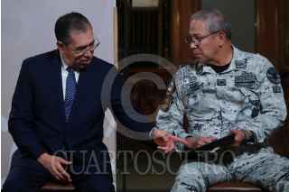 CIUDAD DE MÉXICO, 09JULIO2024.- Luis Cresencio Sandoval, subsecretario de Seguridad Pública, y David Córdova Campos, comandante de la Guardia Nacional, durante la conferencia matutina desde Palacio Nacional para presentar el informe quincenal en materia de seguridad. FOTO: GALO CAÑAS/CUARTOSCURO.COM