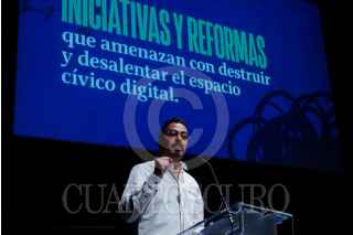 CIUDAD DE MÉXICO, 09JULIO2024.- Leopoldo Maldonado, Director Regional de ARTICLE 19 en la Oficina para México y Centroamérica, Carlos Bravo Regidor, analista político, y la periodista Gabriela Warketin durante la presentación del informe “Derechos Pendientes”, reporte sexenal sobre Libertad de Expresión y Derecho a la Información en México, presentado en el Centro Cultural España. FOTO: GALO CAÑAS/CUARTOSCURO.COM