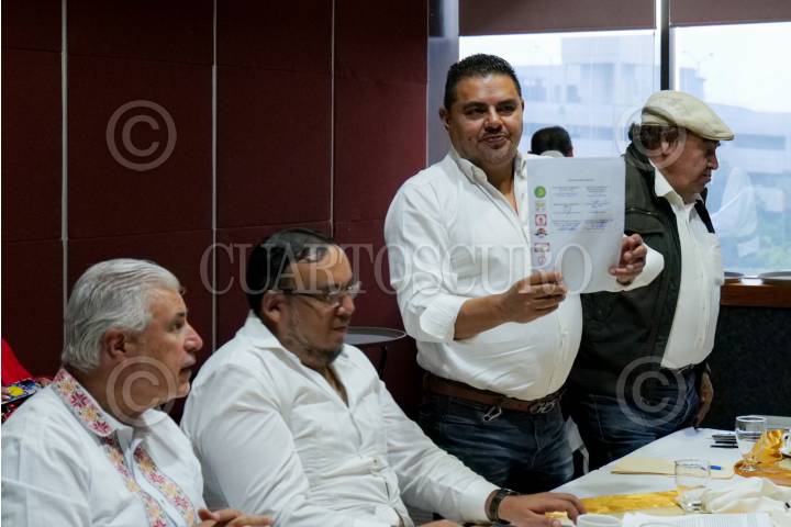 CIUDAD DE MÉXICO, 09JULIO2024.- José Dolores López, secretario general de la CIOAC-JDLD, posó con el "Llamamiento campesino e indígena por la soberanía alimentar de México" firmado por varios miembros de organizaciones indígenas y campesinas. Este llamamiento se dirigió al gobierno y a la nueva presidenta electa, y exige la integración a la constitución de la Propiedad Social; el reconocimiento de los derechos de las formas de organización rural; la autonomía para los pueblos indigenas; la soberanía y autosuficiencia alimentaria; un presupuesto rural y la construcción de la banca de desarrollo agropecuario; detener la devastación ambiental y el agua como derecho, tras otras reivindicaciones. FOTO: ALICE MORITZ/CUARTOSCURO.COM