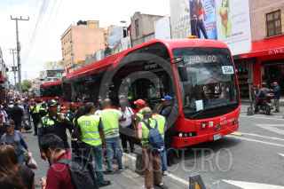 CIUDAD DE MÉXICO, 09JULIO2024.- Murió una joven mujer atropellada por el Metrobús, en la calle de Miguel Alemán y cerrada de Mixcalco, colonia Centro. FOTO: ROGELIO MORALES/CUARTOSCURO.COM